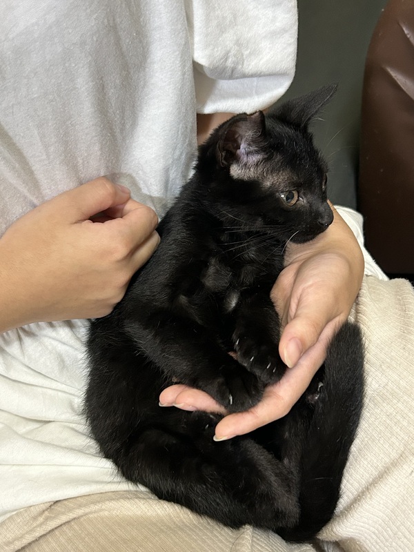 | 特徴(性格など) | 黒猫のクロちゃんとてもハンサムな黒猫でまだ人慣れ訓練中なので隠れてしまう事が多いですが抱っこして撫ぜていると段々リラックスしてくれます。 | ||