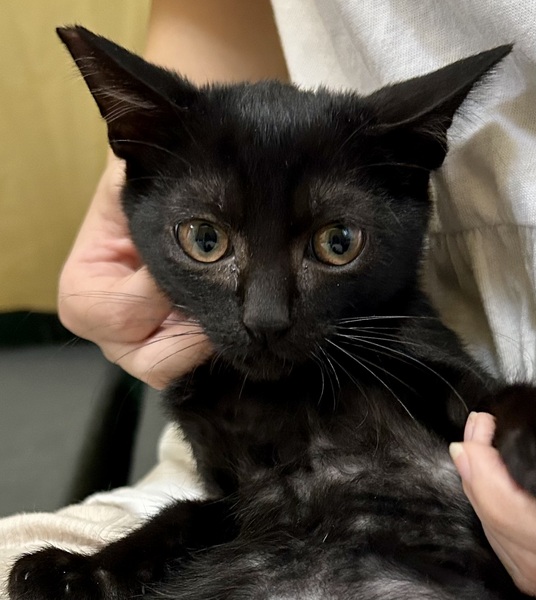 | 特徴(性格など) | 黒猫のコロちゃんとてもおとなしめの男の子。 人慣れ訓練中なので隠れてしまう事が多いです。 理解して優しくゆっくり成長を見守ってくださる方にお願いしたいです。 |
