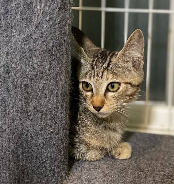 | 特徴(性格など) | 母猫、兄弟猫と保護され、今はこちらで一緒に過ごしています。 少しずつ好奇心も旺盛になってきましたが、まだ緊張感はあります。 エイズ、白血病検査陰性。 体重900グラム |