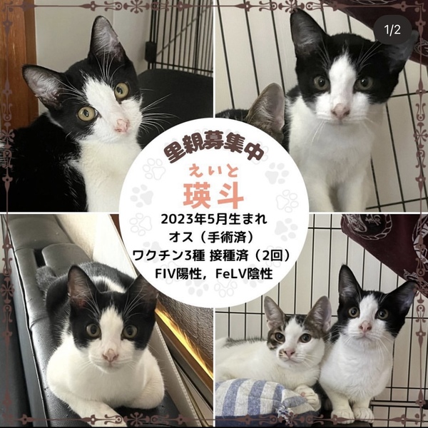 | その他(譲渡条件など) | 基本的には定期的に開催している譲渡会にて、 猫と触れ合っていただきながら面談させていただければと思います。 譲渡会情報はイベントをご覧ください 個別お見合いも可能ですので、まずはご相談ください。 譲渡にあたっては ・トライアル(お試し飼育) ・譲渡費用のお願い ・契約書記入 このような流れをお願いしております。 お問合せ、お待ちしております! |