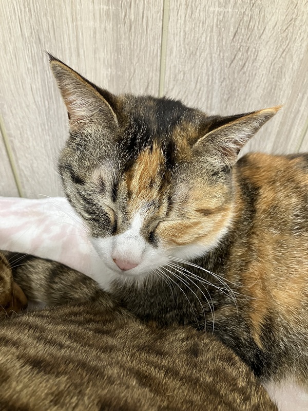 | 特徴(性格など) | シマ三毛の女の子です。 女の子らしく慎重で臆病な一面も有りますが、とても甘えん坊で可愛い声で撫でてーと要求すぐにお腹を出してゴロンゴロンしてます。 抱っこは苦手で長くは出来ませんが、穏やかで爪切りもシャンプーも大人しく家具や壁で爪研ぎする習慣もありません。 引越してすぐは隠れたり、トイレ失敗したりしました「うちで預かり始めたとき」 後はやきもち焼きな感じがします。 |