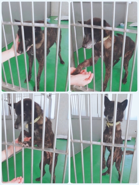 | 特徴(性格など) | ご覧いただきありがとうございます! ⭐【 ①〜⑰のアンケート】にお答え頂けない方、アンケート内容が曖昧な方は、譲渡のお話を進めていけない為、お返事は致しかねますので予めご了承くださいませm(_ _)m ⬇️ ↓ ♡小柄な中型、黒茶の綺麗なブリンドル、立ち耳のとーっても可愛い男の子ฅ•ﻌ•ฅ 見た目の推定になりますが5歳位?体重は10キロ無い位、可哀想に非常に痩せていて爪も伸びています( ; ; ) 今までどう生きてきたのか知る由もありませんが( ; ; )来た当初は無理もありませんがちょっと怖がっていて初めての人、知らない人にやや警戒する様子でしたが今では環境にも慣れてきて人懐こく愛嬌たっぷりで尻尾フリフリ?撫でて〜出して〜と健気に何度も檻の隙間から手を出して必死に甘えてきます。 無駄吠えもせず(出してほしくてヒンヒン鳴いたりはしていますが(;_;) 寂しいし出してほしいに決まってますからこれも無理は無いと思います…)他犬に威嚇もしません。 そして、未去勢ですが何故か片足を上げずにお座り女の子スタイルでオシッコをします(^。^) 小さめでマンションでも飼育しやすいこじんりサイズのワンちゃんです。 ◎痩せているので今は毎日2回、ご寄付で送っていただいた栄養価の高い子犬用フード(ネイティブドッグフード パピー)とデビフ缶詰を食べさせています。ジュレやレトルトパウチも送っていただいたのでこれからお痩せじゃなくなるでしょう♡ 綺麗にブラッシング、シャンプーをして栄養をつけたらもっと凛々しい美犬クンになる事でしょう(^O^)/ 優しい職員さん方が怖くないよ、今度こそは幸せになれます様にと毎日触れ合いながら、一生懸命にお世話してくださっています。 満足にお散歩もしてもらっていなかったような印象で職員さんが連れ出してくれるお散歩はとても嬉し楽しそう♪嬉しさや興奮からなのか?マウンティングしたりします(^^;; https://poppet.fun/article/5741 リードの引きは無く、小柄ですし問題無く制御出来ます。 ※ですが、急な物音や知らない場所にビックリして怖がって、咄嗟に逃げようとする可能性も大いにあり得る事だと思いますし、その時の力、引きの強さも想定し、突然の走り出しや高い塀や壁・柵の飛び越え・急な方向転換や首を振って後退りからの首輪抜け、胴輪抜けにはご用心です!! まだ呼び戻しも覚えていないので、もし逃がしてしまったらピューっと走って行ってしまうかもしれません!(>_<) 特にこの子は怖がりな面もあり、すばしっこく逃げようとしたりもするので要注意で、もし逃がしたらもう捕まえられない!という位にお考えくださいm(_ _)m ※繰り返しになりますがどんな子であっても、慣れてきても、常に、脱走・逃走には充分な注意と最大限の配慮をお願いしております! この子のペースや体力をみながら、躾や毎日朝晩のお散歩、トイレなど必要な運動の時間をしっかり取ることの出来るご家庭、 譲渡後には早急な病院受診が可能なご家庭を希望しておりますm(_ _)m 捨てられたのでしょうか、迷子でしょうか。 何故ここに居なければならないのでしょう。 人間よりはるかに短い犬生なのに。 何故大切な家族を直ぐに探さないのか、 何故最後の時まで愛せないのでしょうか… 保護時、首輪や胴輪などは何もついていませんでした。写真の首輪は管理所でつけた物です。 言葉を持たない大事な家族を守る為に首輪、胴輪に迷子札・鑑札を必ずつけて頂きたい、そして、そんな悲しい状況のままでいたより保護されて良かったと考え、この子に幸せを、温かい本当の本物の家族を見つけたいと願っております⭐︎⭐︎ 人間が焦らずにゆっくり見守りながら、愛情を持って接し、しっかりとお散歩にも連れ出して行けば、この子はきっと新しい家庭に馴染んでいけると、本当は思い切り甘えて目一杯遊んでほしいのだと思います。 辛かったであろう過去があるという点も踏まえ、人は怖くないんだよと、ずっと人を信じてくれる様に、広い心でドンとこい^_^と仰って頂ける方、この子をこの先も尻尾フリフリ♪で、ニコニコの笑顔にしてくださる方、いらっしゃいませんか? どうぞ宜しくお願い申し上げますm(_ _)m ⭐️必ず室内飼育で、譲渡後速やかに病院受診、健康診断、(血液検査、尿便検査、ノミダニ・フィラリア予防や爪切り、シャンプー等)混合ワクチン、去勢手術をする事が可能な、なるべくお留守番が少ない、沢山優しくスキンシップやコミュニケーションで触れ合っていただけるご家庭。 ⭐️フィラリア予防実績、混合ワクチン、狂犬病予防接種の有無も不明です。 フィラリア陽性の可能性も有り得る事となります(>_<) ⭐️室内でのトイレの躾も1からとなります。 未去勢ですが片足を上げずに女の子スタイルで排尿します。 何かと手がかかり大変ですが(広めのトイレスペースやペットシート、マナーベルトを用意など)覚悟と根気・理解で受け入れて下さる方m(_ _)m ※譲渡後はお早めの健康診断、去勢手術、