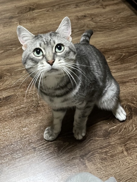 | 特徴(性格など) | サバトラ とってもおとなしく甘えっ子です。 抱っこも撫でられるのも大好きです。 エイズ・白血病、共に陰性 |