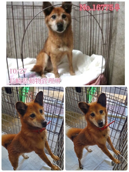 | 里親募集する理由 | ♡小柄な中型、とっても人懐こくて誰にでも尻尾フリフリの可愛いシニアの女の子♡ 推定になりますが体重は10キロ無い位。 あまり若くはないようで10歳〜位?少し耳が遠いようですが白内障は見られません。人もお散歩も大好きですฅ•ﻌ•ฅ 寂しく助けを待っています! 訳も分からず突然連れて来られてどんなに寂しく心細いか。一日も早く温かい家庭の中で過ごさせてあげたいです。 ⭐️県外、遠方の方でも譲渡の条件が合い、良縁に恵まれましたら里親になっていただけますのでどうぞ宜しくお願い致します! ※ ※長くなりますが犬猫と里親様の幸せの為にも、募集内容を熟読し、必ずご家族とよく相談をされた上、ご家族全員の賛同を得られてからのお問い合わせ をお願い申し上げます。 ⭐️外飼いでは無く、室内飼育で家族の一員として迎えて下さる方、「引き渡し方法」のところにあります【①〜のアンケート】にご回答と共にお問い合わせをいただけますよう、お願い申し上げますm(_ _)m 長崎県諫早市森山町本村付近にて住民からの通報により、深い水路に落ちて動けないでいたところを保護され10/27に保健所収容、飼主の迎えは無く現在は長崎県動物管理所へ移送されてきています。 いつから彷徨って落ちていたのか( ; ; ) 空腹、雨風にも苦しんできたことでしょう。 その後は初めての知らない場所に収容されてずっと不安で寂しいと思います。。 可哀想に汚れて爪も伸びています。 今までどう生きてきたのか知る由もありませんが( ; ; ) とても人懐こく穏やかな性格花丸の良い子ちゃんです♡ 人の姿が見えると時折、ここから出して〜と甘えて吠える程度でいつも大人しく我慢してケージの中に座っています。よく人の目を見る子で本当に可愛いお利口さんです。 マンションでも飼育しやすいサイズですしやんちゃな子供パワーいっぱいの若い子より、落ち着いた子と暮らしていきたい方にピッタリな、シニア犬ならではの魅力があるワンちゃんだと思いますฅ•ﻌ•ฅ ◎現在は毎日2回、栄養価の高い良質なドライフード(ネイティブドッグフード)とデビフ缶詰を食べさせています。 優しい職員さん方が怖くないよ、今度こそは幸せになれます様にと毎日触れ合いながら、一生懸命にお世話してくださっています。 お散歩大好き♪職員さんが連れ出してくれるお散歩では嬉し楽しそう(^^) リードも引っ張らず問題無く制御出来ます。 ※ですが、急な物音や知らない場所にビックリして怖がって、咄嗟に逃げようとする可能性も大いにあり得る事だと思いますし、その時の力、引きの強さも想定し、突然の走り出しや高い塀や壁・柵の飛び越え・急な方向転換や首を振って後退りからの首輪抜け、胴輪抜けにはご用心です!! まだ呼び戻しも覚えていないので、もし逃がしてしまったらピューっと走って行ってしまうタイプかもしれません!(>_<) もし逃がしたらもう捕まえられない!というようにお考えくださいm(_ _)m ※繰り返しになりますがどんな子であっても、慣れてきても、常に、脱走・逃走には充分な注意と最大限の配慮をお願いしております! この子のペースや体力をみながら、毎日朝晩のお散歩、必要な運動の時間をしっかり取ることの出来るご家庭、今後、体調の急変などもあり得ることを念頭に置き、譲渡後には早急な病院受診が可能なご家庭を希望しておりますm(_ _)m 捨てられたのでしょうか、迷子でしょうか。 何故ここに居なければならないのでしょう。 人間よりはるかに短い犬生なのに。 何故大切な家族を直ぐに探さないのか、 何故最後の時まで愛せないのでしょうか… 保護時、首輪や胴輪は何も付いていませんでした。(写真の首輪は管理所でつけたものです) 言葉を持たない大事な家族を守る為に首輪、胴輪に迷子札・鑑札を必ずつけて頂きたい、そして、無事に保護されて良かった!と考え、この子に幸せを、室内で一緒に暮らせる温かい本当の本物の家族を見つけたいと願っております⭐︎⭐︎ 人間が焦らずにゆっくり見守りながら、愛情を持って接し、しっかりとお散歩にも連れ出して行けば、この子はきっと新しい家庭に馴染んでいけると思います。大好きな人のそばで思い切り甘えたり遊んだりしたいのだと思います。 どんな過去があるのか分からない、もしかしたら何か病気や障害が有るのか、無いのかも分かりません。こういった点も踏まえ、広い心でドンとこい^_^と仰って頂ける方、この子を守りこの先も尻尾フリフリ♪で、ニコニコの笑顔にしてくださる方、いらっしゃいませんか? どうぞ宜しくお願い申し上げますm(_ _)m ⭐️必ず室内飼育で、譲渡後速やかに病院受診、健康診断、(血液検査、尿便検査、ノミダニ・フィラリア予防や爪切り、シャンプー等)混合ワクチン、避妊手術をする事が可能な、なるべくお留守番が少ない、沢山優しくスキンシップやコミュニケーションで触れ合っていただけるご家庭。 ⭐️フィラリア予防実績、混合ワクチン、狂