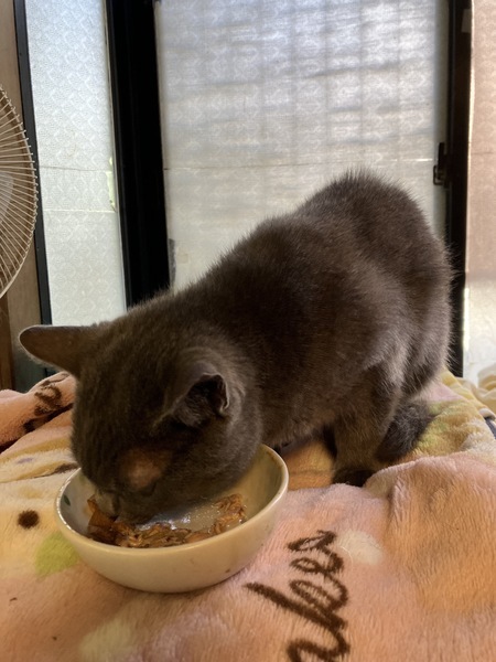 | 特徴(性格など) | 2023年夏 NPOあだちどうぶつネットのメンバーで自力で外に出られた猫たち10頭を保護しました。 飼い主は賃貸料不払いで失踪しました。 警察に届け、勤務先も探しましたがいまだに行方不明です。 もともとは2年前多頭の家があると近所の方が動物病院に相談し、そこからメンバーに個人的に相談が受けたのがはじまりです。 メンバーははやっと会えた飼い主を説得し、家にいる猫の避妊去勢手術の約束ができ、♀2頭の手術ができました。その費用は病院に支払われず、動物病院はその飼い主とはかかわらないことになりました。 その後も他のメンバーが個人的に訪問し全頭手術しましょうということでしたのですが、途中で音信不通になり、家の中に猫が残ったまま、誰とも接触ができなくなりました。 2年後の今年の夏近所の方から猫が外に出てきて困っていると相談があり訪問すると、10頭のがりがりの猫がいました。家主さんと接触でき、飼い主は失踪。 家の中にいる猫は外に出したということでした。 子猫はいない、3歳以上の猫もいない。 外猫は自分でどこかを壊して出てきたようで歯が折れていました。 保護できた10頭のうち、すこしずつ家族が決まっております。 グレーちゃんの紹介をさせてください。 【 【仮名】グレーちゃん 【性別】メス【年齢】推定3歳 美しい全身グレーの女の子です。毛並みは細い毛の集まったような柔らかな手触りです。 家に入りましたらすぐに慣れてくれて、おやつでご機嫌さんになり、ごはんもよく食べてくれて 体を人の体にすりつける仲良しポーズもみせてくれています。 保護してまだ2か月。これからどんどん仲良しになれる楽しみがあります。 棚の上に登ったり、椅子の上で眠ったり自由に楽しんでくれています。 人恋しい思いがいろいろな場面で見られます。 パートナーになれる猫さんです。 避妊手術を済ませ、ワクチン接種し、ウィルス検査もエイズ、白血病共に陰性でした。 血液検査では内臓になにも問題ありません。 |
