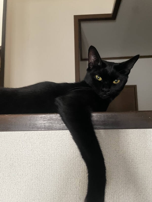| 特徴(性格など) | 黒猫の女の子です。 呼ぶと、『にゃー』と返事をするのですが、ものすごく可愛い声です。 人懐こくて、いつの間にかちょこんと隣で寝ています。 |