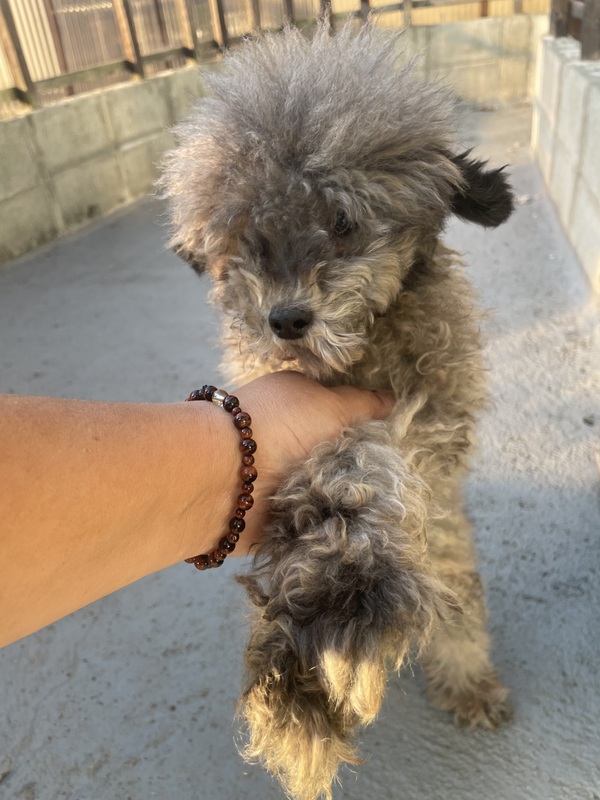 | 特徴(性格など) | タイニーサイズの、綺麗なシルバーの男の子になります! トリミングしたら、すごくイケワンになりますよ! 人懐っこい、可愛い性格の子 *後ろ両足にパテラがありますが、元気に走れています! |