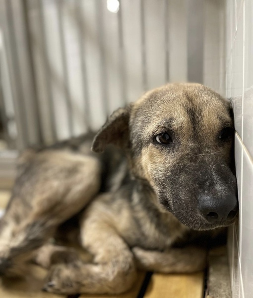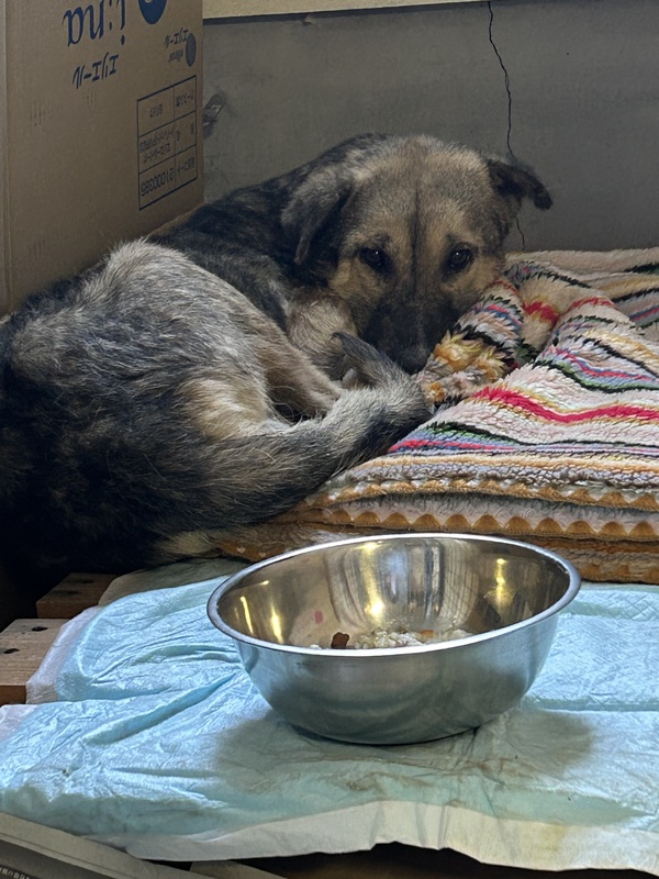 | 特徴(性格など) | 体格は大きいですが痩せていて骨が浮いています 人間が怖いので、見ている前で動くことはありません伏せた状態でご飯も食べています 唸りも威嚇もありません |