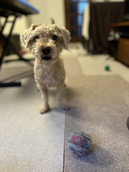 | 里親募集する理由 | 元の飼い主さんが飼えなくなった、という推定9歳のMixの男のコを、横浜市動物愛護センターから引き出しました。 ずっとトイプードルと間違われていたくらい、フォルムはほとんどトイプーです。が、マイクロチップの登録情報からはミックス犬。確かに表情、とくに意志の強さを感じさせる目なんかを見ていると、テリア系の血が入っているような感じもします。 |