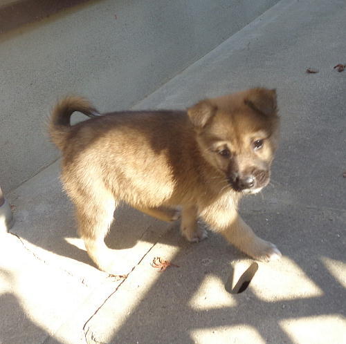 | 特徴(性格など) | 仮愛称:「コロ」くんと名付けました。 性格:人の手により育てられましたので人が大好きなオス子犬、元気に遊び子犬の社会性を学習中です。甘噛みが始まる頃です。 体重:1.7kg(12月9日) 医療面:健診済み・検便(-) ノミダニ予防済み 2種混合ワクチン接種済み |