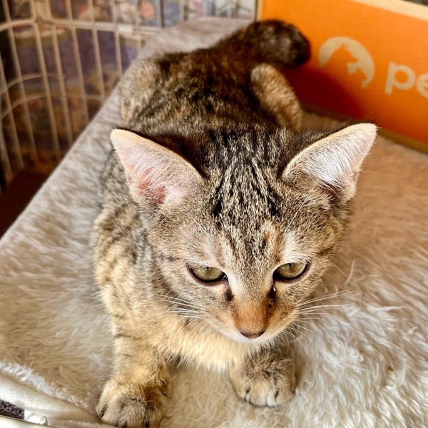 | 特徴(性格など) | 控えめで姉妹のキジお姉さんより1歩後ろに下がっていますが、 遊びだしたら負けずと飛び出していきます。 やや小柄で小顔。 ご飯もたくさん食べるようになって体重アップ中 ワクチン接種2回 ウィルス検査 エイズ、白血病- 駆虫済み |