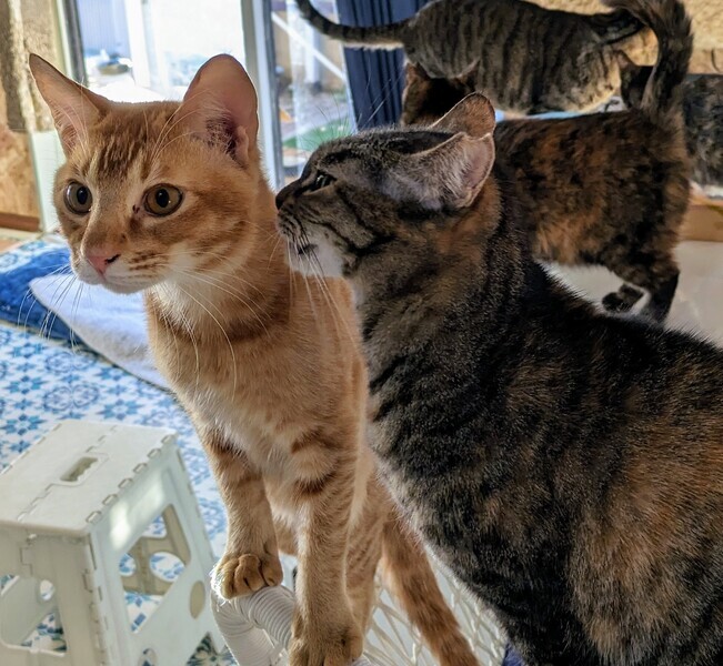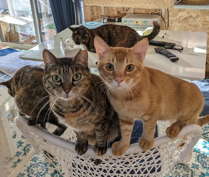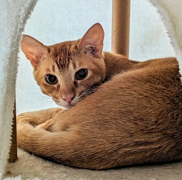 | 特徴(性格など) | きれいな明るい茶色の猫です。 脚には縞模様があります。 1歳になったばかりくらいなので、元気一杯で、かなりの甘えん坊です。 生まれながらにかなりのビビりのようで、人馴れ修行中です。 撫でてしまえばあまり嫌がりませんが、触ろうと手を伸ばすと、それが怖いようで逃げます。 年上の猫が大好きで、大きくなった今でも子猫のように甘えています。 姉妹(サビ)が2人いて仲良しですが、どちらかというと年上の猫に甘える方が好きなようです。 この子より年上の猫ちゃんが居るお家に迎えて頂きたいと思います。 先住猫ちゃんがいない場合は、我が家の保護猫の誰かと2匹一緒の譲渡となります。 |