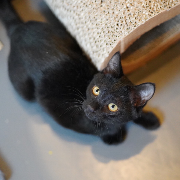 | 特徴(性格など) | 艶々の黒い毛並みと長いしっぽが美しすぎる黒猫です。 中身は遊び盛りで元気いっぱいの甘えん坊で、抱っこするとすぐゴロゴロ言ってます。 たくさん遊んだり構って貰えるお家が希望です。 仲良しのドンちゃんと一緒のお迎えか、元気な子猫と遊べる先住猫さんのいるご家庭歓迎です。 健康管理や脱走対策の他、子猫が安全に暮らせるよう、お部屋が片付いているご家庭とのご縁を希望します。 |