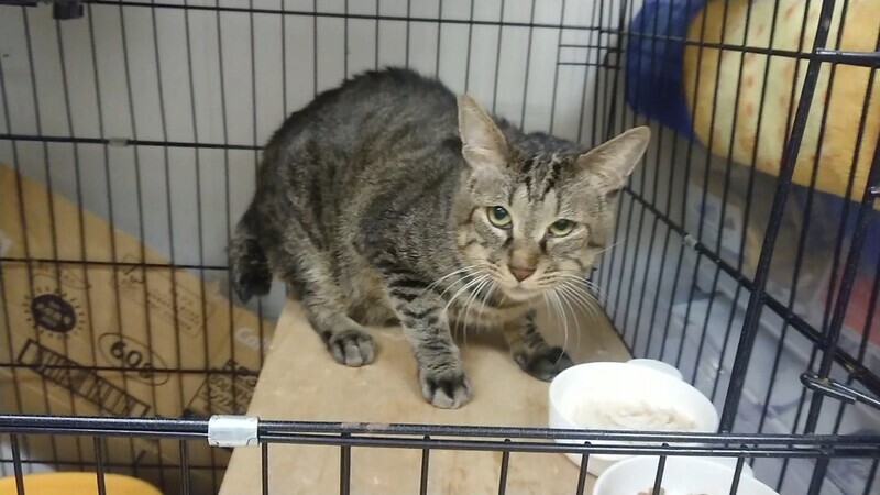 | 特徴(性格など) | 仮称「マッピー」です。キジトラの男の子です。 今回、マッピーと共に劣悪な環境から保護した猫の中で、一番ビビリーな子でしたが、保護した日から上手にトイレも出来、ご飯もよく食べてくれました。 大柄ですが、最初は段ボールにこもりっきりで、ご飯を差し出すと最初は手が出ましたが、すぐにご飯を平らげていました。美味しいものにはかなわない様です。 しばらくゲージ生活でしたが、広いゲージに移すと、段ボールから出てきて、おもちゃで遊ぶようになり、 じゃれるのが大好きになりました。本当はずっとずっと遊びたかったみたいです。 今ではゲージも開放しているので、シェルター内を散歩していますが、ちゃんと自分のゲージをわかっていて、戻って就寝します。頭の良い子です。 エイズ、白血病の検査は陰性です。ワクチン、駆虫も済んでいます。 |