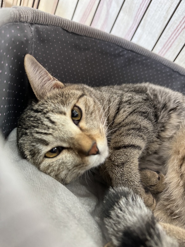 | 特徴(性格など) | 薄い色のキジトラ猫ちゃんです。 マズルがふっくらして可愛いお顔です 性格はおとなしく、控えめな性格です |