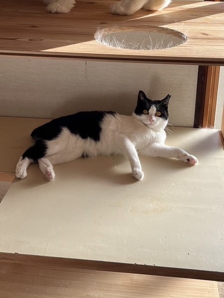 | 特徴(性格など) | ?ふじこちゃん ?ハチワレ 女の子 ?短毛、短尻尾 小柄 2.6kg ?2歳くらい ?エイズ、白血病陰性 ?ノミダニ駆除済 ?ワクチン接種済 【性格】 人の姿を見るなり近づいて甘えてきます。 普段はマイペースに過ごしています。 撫でると横たわり遊びを要求してきます。 お茶目な性格で他猫にも友好的です。 短くなった尻尾をフリフリさせ、歩く時もぷりぷりしてとってもキュートな美人さんです。 |