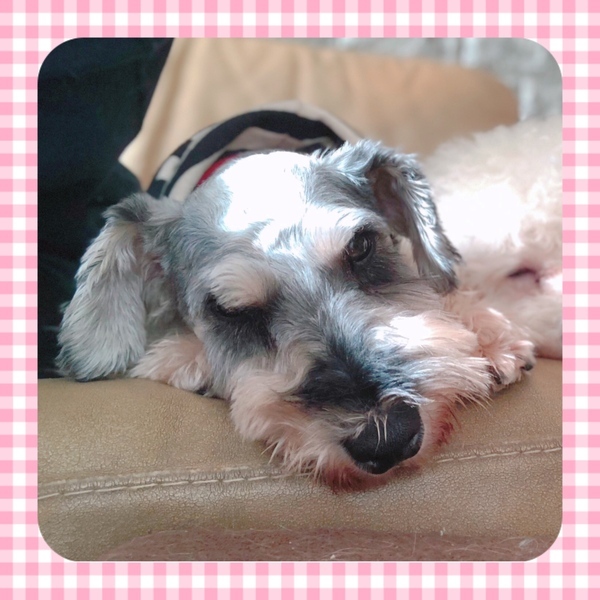 | 特徴(性格など) | 【仮名】 ネメシア 【犬種】 ミニチュアシュナウザー 【カラー】 ソルト&ペッパー 【体重】 7.6kg 【性格】 とても静かで穏やかな男の子です。人が大好きで、静かにそっと横に来て甘えてきます。ジーッと静かに見て、かまってほしいアピールをします。 ほとんど吠える事はありません。 他のワンコともまったく問題なく過ごせる子です。吠えられても動じることなく、サッと避けたり、 静かにしています。他の子がくっついてきたら、そのままくっついて寝ています。 【ご飯】 ドライフードに手作り(肉、魚と野菜などを一緒に煮たもの)や缶詰め、果物とトッピングしてあげています。 食欲旺盛でなんでもよく食べます。 【お散歩】 まだまだ、緊張して止まって、周りを確認している所はありますが、怖がる様子はありません。お散歩は大好きなので、玄関からもスッと出ていきます。歩く時もアイコンタクトを取る事で安心します。強く引く事もなく、上手に歩きます。 【お留守番】 他のワンコとフリーで過ごしています。 【トイレ】 シート認識は出てきましたが練習中です。お外でもできます。 【その他】 現在、特に治療中の疾患はありません。 元気な子です。 |