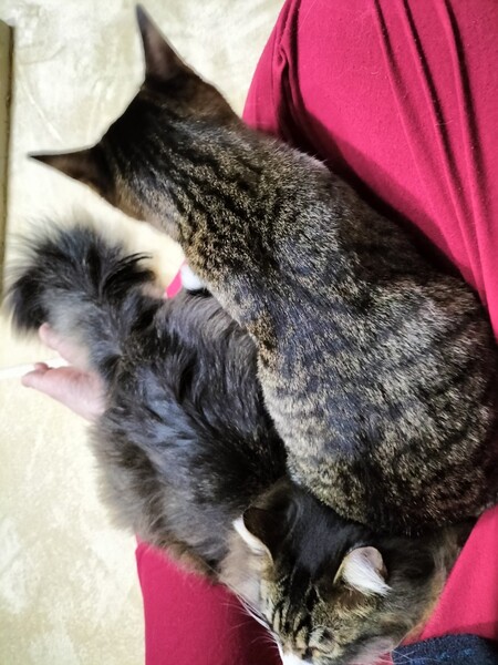 | 里親募集する理由 | お外である猫さんがガリガリのぼろぼろ、生きる気力を失っているように見えました。 その子の姿に心を痛め、保護主さんが保護を決意してくれました。 ただ、その猫さんにはその時育てている子猫2匹がいることが判明し 子猫を探して、子猫たちも一緒に保護してくれました。 それが、みじくん・ながくん兄弟です。 |