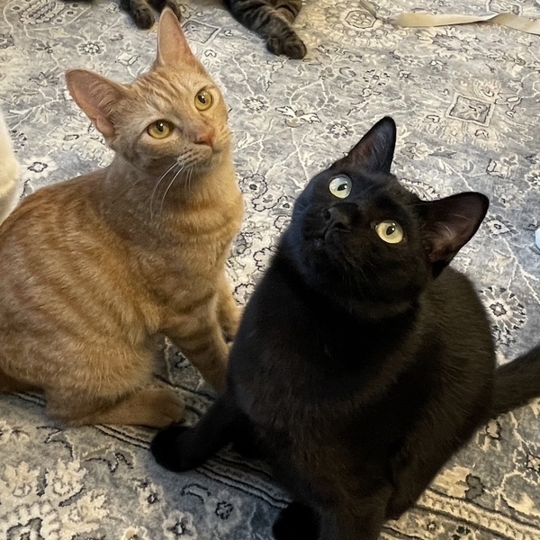 | 特徴(性格など) | ◎ノワール(黒猫)オス ノワールは人にも猫にもフレンドリーな超絶甘えん坊。お膝に乗るのも抱っこもおんぶも大好きです。怖がりのピノをいつも気遣う優しいお兄さん。ペアでずっとのおうちを探しています。 ◎ピノ(茶トラ)メス 全身茶トラの女の子は珍しいと言われています。性格は控えめで穏やかです。当初はとてもビビりさんでしたが今ではすっかり甘えん坊です。 日中は寝てますのでお留守番は問題ないですが、毎日しっかりスキンシップの時間をとってあげてください。若猫は皆そうですが深夜や明け方に運動会を繰り広げます。体も大きくなってきているので走りまわる音もかなりするのでそれに耐えられる飼育環境や家族の大らかさが必要かと思います。 ●健康状態 とても健康で元気です 避妊手術済み ウイルス検査(エイズ・白血病)陰性 ワクチン 駆虫 検便 シャンプー 爪切り |
