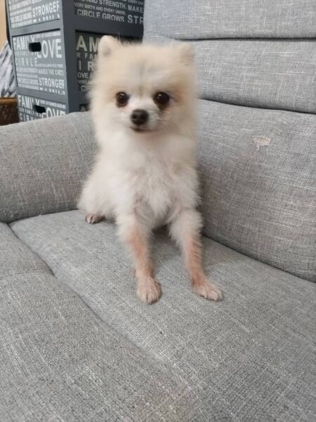 | 特徴(性格など) | ポメラニアン 色:ホワイト 名前は、ライトくん 体重 2kg ワクチン 接種済み レボリューション 済み フィラリア 陰性 心雑音 問題無し パテラ 左グレード3 去勢手術 済み 人懐っこくフレンドリーで飼いやすい子です。 繁殖場でボサボサだったのか丸刈りで来ました。 皮膚に赤みがあるので皮膚炎の薬服用中です。 |