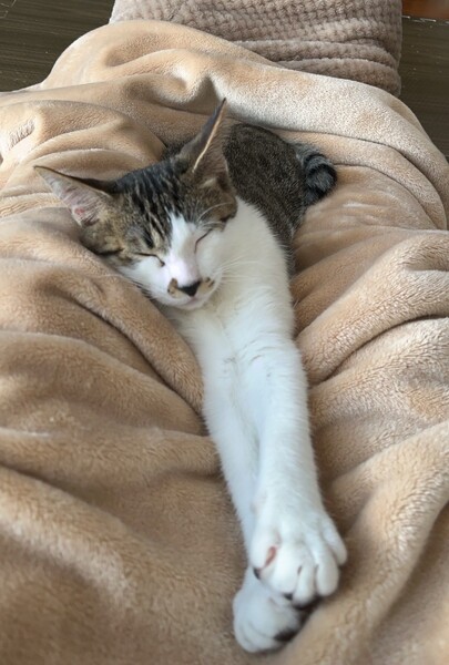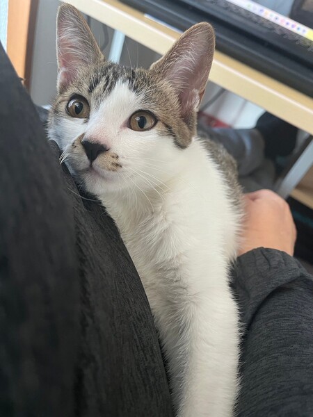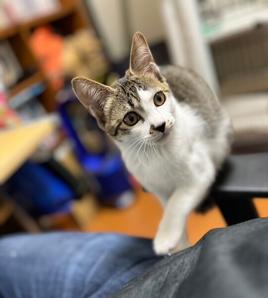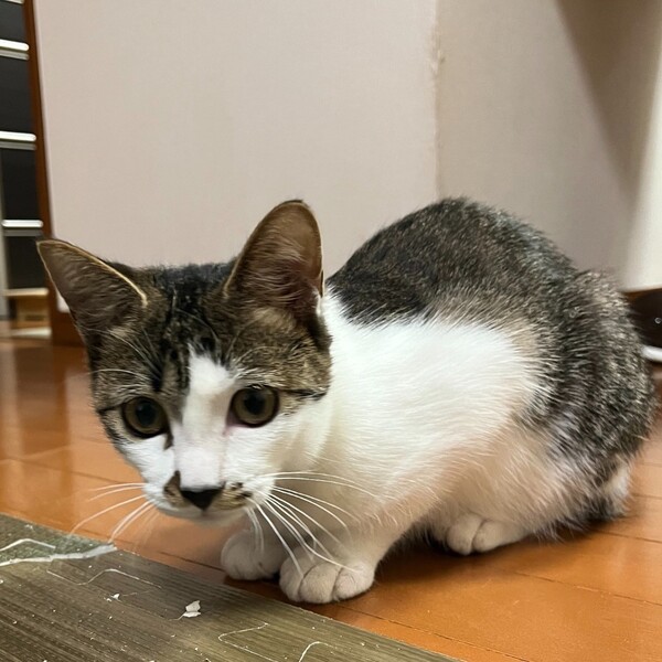 | 特徴(性格など) | 2023.9.7生まれ(推定) 毛色:キジ白 キジ白、かぎ尻尾の元気いっぱい、可愛いくて、賢い女の子です! 屋根から救出されたので仮名は「屋根子」。。。 譲渡会では、いつも隠れようとしますが、家では猫たちと遊びまくりです♪ 抱っこも膝の上も大好きです♡ |