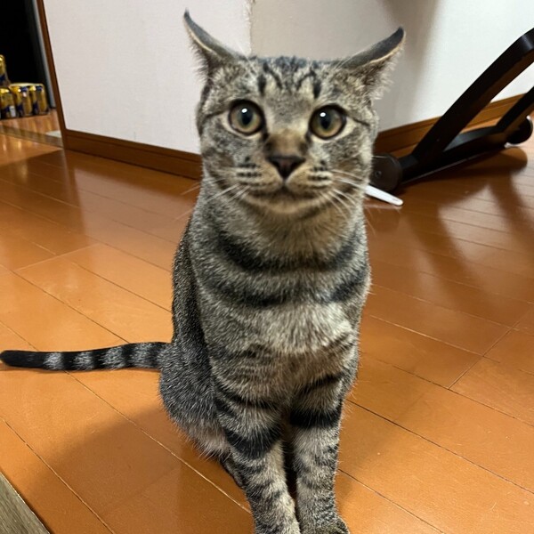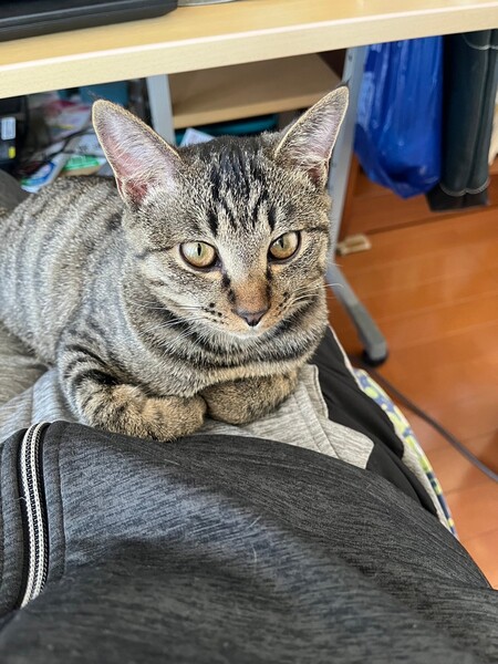 | 特徴(性格など) | 2023.9.20生まれ(推定) 毛色:キジトラ よく鳴き、よく食べる、元気いっぱい、キジトラの男の子です。 人が大好き!ずーと膝の上にいてくれますよ! 預かりボラ宅の、他の猫達みんなに体当たりしニャンプロをしにいきます♪ |