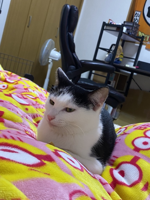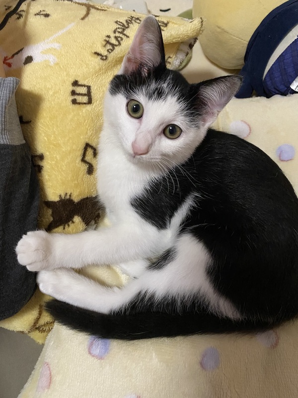 | 特徴(性格など) | ハチワレ 白黒猫 最初はとても人見知りをしますが慣れてくると少しやんちゃになります。 チュールが大好きです。 |