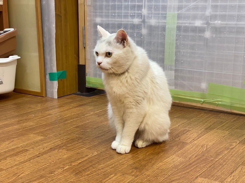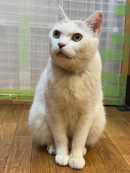 | 特徴(性格など) | 2016.1.1生まれ(推定) 毛色:白 ユーモアあふれるフォルムと表情♡ 推定8歳。 まだまだ元気いっぱい、血気盛んな みたらしおじさん♪ 良く鳴き、良く食べ、隙あらば別のお部屋に入ろうと、毎日企んでいます笑 ナデナデも大好きで人間には慣れていますが、みたらしスイッチが入ると、 突然ガブガブマンに変身!! 猫との暮らしに慣れている方や、小さなお子様や先住猫さんのいないお家を希望します。 |