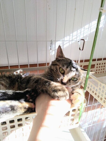 | 特徴(性格など) | ◆ふくろっ子ちゃん ナデナデ好きな可愛い甘えん坊 ○埼玉県内で保護されました。 ○推定2歳くらい(2024年3月時点)のキジトラの女の子です。体重は2.6kg(2024年2月3日時点)です。 ○中くらいの長さで先が鍵しっぽです。 ◯人馴れしていてナデナデ好きの甘えん坊さん。 ◯構ってほしそうにします。 ◯おもちゃで遊びます。 ◯ケージ生活中でトイレを場外にしがちです。トイレ練習中です。 ◯同じく里親募集中の「べんざい子」はお母さんです。 ★ワクチン接種済み、不妊手術済み。 ★猫エイズ、猫白血病ともに陰性。 ☆単身のかたはご相談ください。 ○YouTubeにも動画をあげています。こちらもご覧下さい。 「ふくろうっ子」 https://youtube.com/shorts/VVSDplRqEhw ★★お見合いを設定することも可能です。まずはお申込みください★★ |