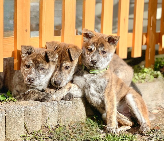 | 特徴(性格など) | 珍しい柄、ブリンドルのトラがらの子達です。人懐こく寄ってきてくれます。 写真の左からメスの二コルンちゃんは活発女子。 真ん中の反立耳のオスのマリウス君は食いしん坊男子。 一番右端の子はナオミちゃんはおっとり女子。 |