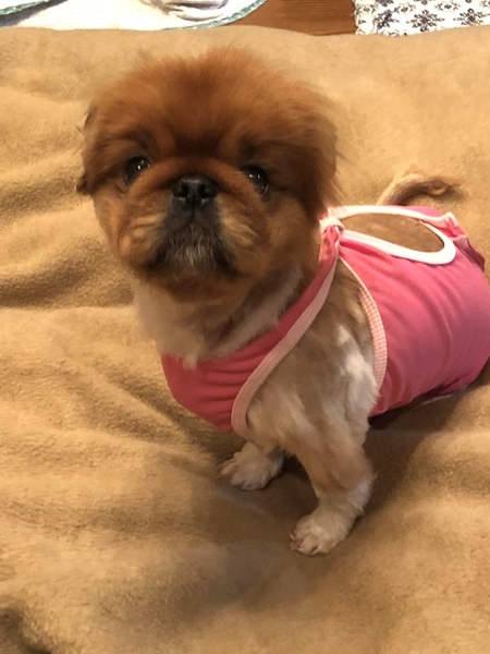 | 特徴(性格など) | 犬種 : ペキニーズ 毛色 : 茶 年齢 : 推定7〜8歳 体重 : 6.1kg 性格 : 人にも犬にもフレンドリーでおとなしい トイレ : シート認識あり。トレーニング中 散歩 : まだ開始していません。 日常の様子 : 食事・留守番・就寝はケージに入れています。在宅中はフリーにしています。自分からケージに入って寝ている時間が多いです。 観察中 お手入れ : 毎月のトリミング・毎日のブラッシング・歯磨き・耳掃除・涙やけなど ※トリミング犬種ではありませんが、必ず毎月1回サロンでグルーミングをして可愛く清潔にして頂ける方、それだけ経済的余裕がある方を希望します。 フード : フィッシュ4、ココグルメトッピング 健康状態 フィラリア : 陰性(−) ワクチン : 5種混合ワクチン接種済み 避妊・去勢 : 避妊手術済み マイクロチップ:装着済み その他 : 触診、聴診、血液検査、検便異常なし 駆虫薬投与、ノミダニ駆除済み、スケーリング済み ★身体に数箇所瘡蓋があります。 |