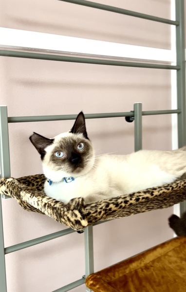| 特徴(性格など) | まだ、ちょっと恥ずかしがり屋だけど抱っこもできます。 優しくて甘えん坊になること間違い無し! 綺麗なブルーの瞳のシャム柄くん。 |