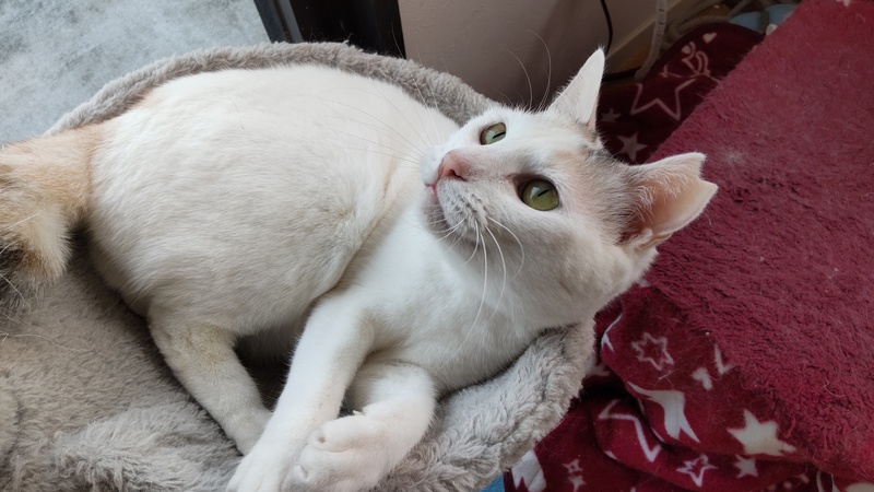 | 特徴(性格など) | 初対面では少し緊張しますがすぐの慣れて甘えます 傍に行くだけでコロン!名前を呼んでもコロンとひっくりかえります ナデナデ、ブラッシングが大好きです 大人しくて手のかからない子ですが愛情いっぱいかけてくれる里親様が現れますように への字になったキュートな尻尾です TNRで一度リリースした子ですので耳カットがあります |