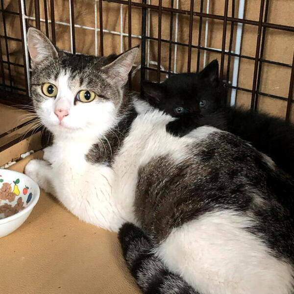 | 特徴(性格など) | キジ白♀。5匹の子猫のママです。 ●ウイルスCK両陰性(Felv/FIV) ●ノミダニ駆虫済(ネクスガードキャットコンボ) ※不妊手術は5/13(月)の予定です。推定年齢は不明ですが獣医師に看てもらい改めて掲載します。 |