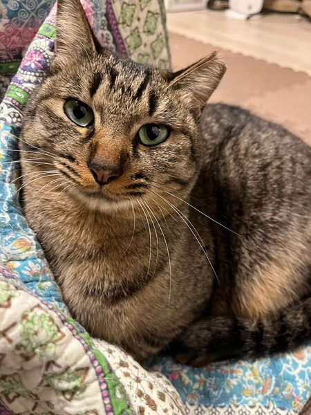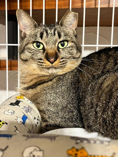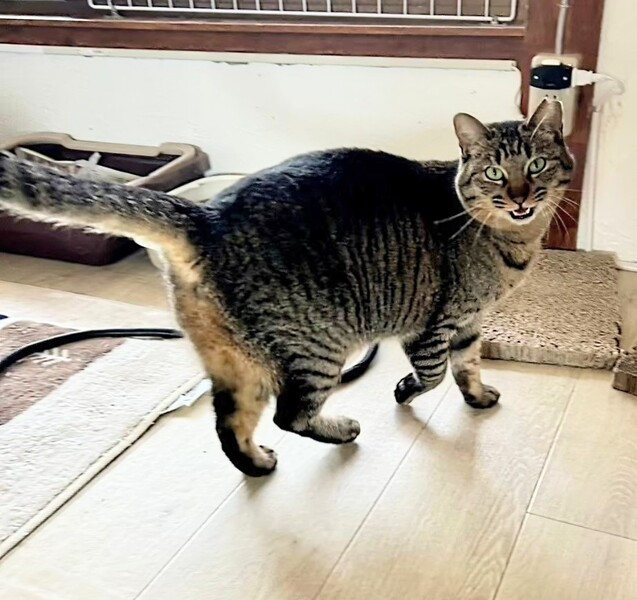 | 特徴(性格など) | スリスリ甘えたさんのキジトラ猫ちゃん。 仮の名を「スリ(suri)」と名付けています。 シェルターの中では、特に誰とも仲良くせず、いつもひとりでいるマイペースっぷり。 でもスタッフたちには、様子をうかがいながら、スッと現れては、撫でて〜(腰パンパンして〜)っと甘えに来ます。 ニャーーン!と高くて可愛い声、そしてどっしりした大きな体で甘えてくる姿はとっても可愛いです。 そんな魅力いっぱいのスリちゃんに愛情を注いでくださるご家族様をお待ちしています。 ◆食事:偏食なし カルカンのウェットが特に好きです。 ◆性格:マイペース、甘えた、時々頑固 ◆好きなこと: •お気に入りの場所でまったりすること •シッポの付け根をパンパン優しく叩かれること ◆お留守番:長いご家庭でも可 ◆夜間の様子:静かに寝ています ♦︎抱っこ:好きではないです ◆その他: *子どもがいるご家族:高学年以上可 *完全室内飼い、室内フリーでお願いいたします。。(慣れるまでケージの設置は必須です) ♡毎週末•祝日に譲渡会(Enn結び会)を行っておりますので、ご応募に迷っておられる方は ぜひ一度実際のスリちゃんに会いに来てやってください。 ♡日々の様子はインスタグラム@enn1105にもアップしております^ ^ |
