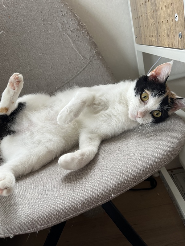 | 特徴(性格など) | 吸い込まれそうな綺麗な瞳と長い尻尾が特徴の美人ミケ猫さんです♪ とても臆病なので慣れるまで多少時間かかると思いますが慣れたら寂しがり屋で甘えん坊さんでとっても可愛いです(o^^o) 元々複数の猫達とお外で暮らしてたので猫が好きな猫さんです。 先住猫さんと相性が良ければとっても仲良しになってくれると思います♪ |