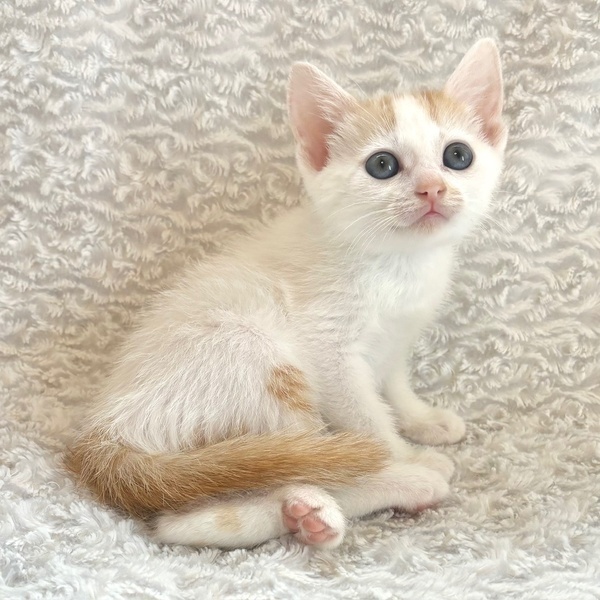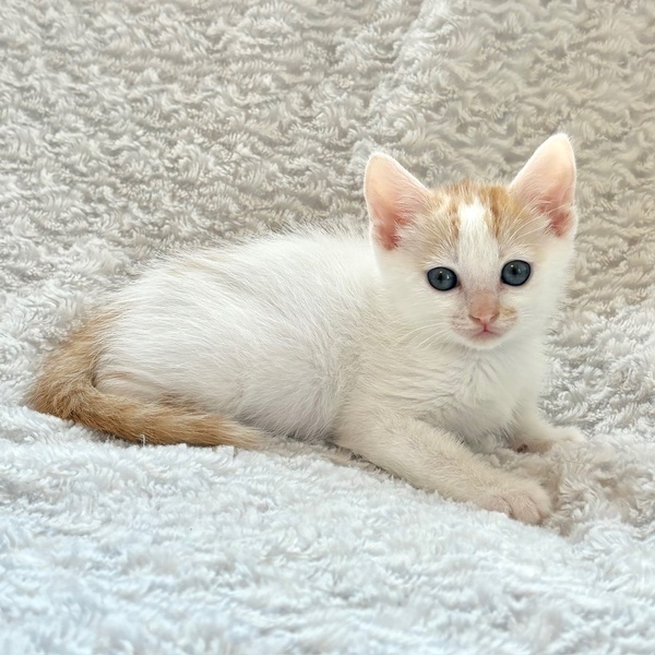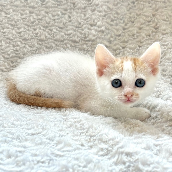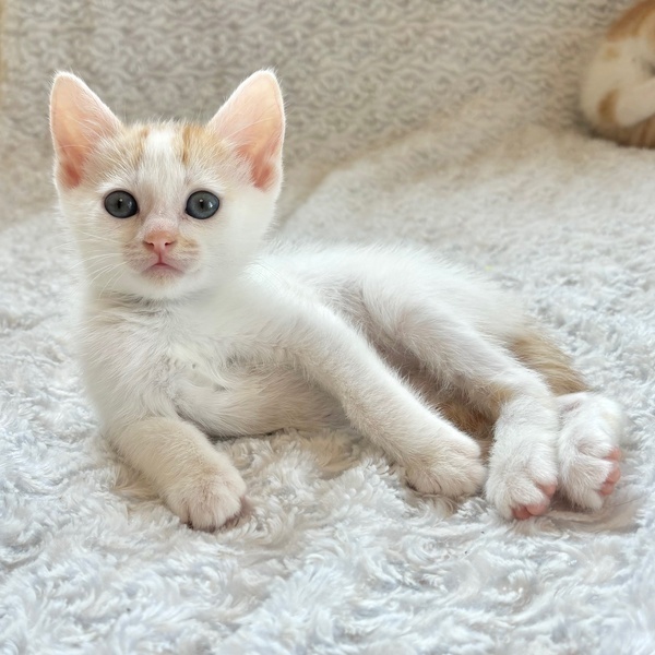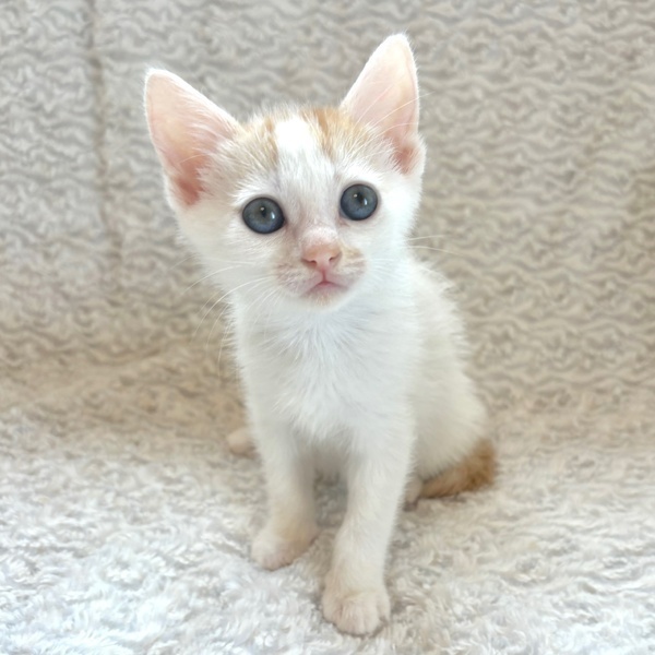 | 特徴(性格など) | 【仮名】あんずちゃん 【性格】文句なしにカワイイあんずちゃん♪ 茶白&ブルーアイの将来有望にゃんこ! このコはマジでヤヴァいですよ♪ 純ノラで警戒心の強いママが育てたとは思えないくらい 保護時から超絶甘えんぼなんです♪ じ~っと目をみて訴えてきますので 何も出来なくなる事うけあいです(笑) まさに人をダメにするヤヴァいコです♪ みんなとにゃんプロして良く寝てよく食べ スクスクと成長中のハナマルにゃんこ♪ ともに過ごしている同世代チビちゃんと 一緒のお迎えをお願いしたいと思います♪ ※1ピキ譲渡不可 |