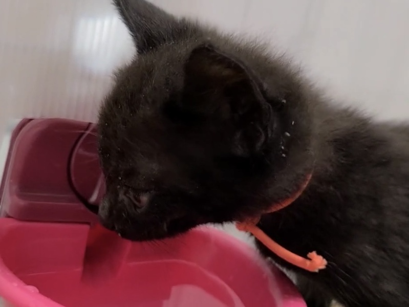 | 特徴(性格など) | 黒猫の子猫、モリオンちゃん。 同時に掲載しているオニキスくんと一緒に保護しました。 体重は約400gです。 ウェットフードをもりもり食べて成長中! 食欲旺盛で、ごはんの時間にケージを開けると喜んで飛び出してきます。 お水も上手に飲めます。 かわいいモリオンちゃんを温かく迎えてくださる方を探しています。 当団体のホームページや他のサイトでも同時に募集を行っています。少しでも気になられましたら、どうぞお早めにお問い合わせくださいね。 オニキスくん:https://satoya-boshu.net/foster/detail.php?@DB_ID@=348524 |