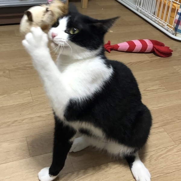| 特徴(性格など) | 白黒ハチワレの縁(えん)くん。 遊ぶのが大好きな男の子です♪ 若くて健康的。施設の環境にもすぐ慣れてくれました。 人慣れもしていて、抱っこもさせてくれるので、とても飼いやすいと思います^^ 性格の良い縁くんにすてきなご縁がありますように! 当団体のホームページや他のサイトでも同時に募集を行っています。少しでも気になられましたら、どうぞお早めにお問い合わせくださいね。 |