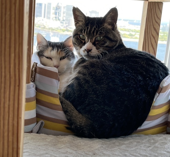 | 里親募集する理由 | メンバーの1人が港区のとある場所で野良猫が繁殖している現場に遭遇し、猫たちの手術やその後のお世話をはじめたことをきっかけに、里親さんや近所の人たちに輪が広がり、2014年、「みなとねこ」は活動をスタートしました。 その時、その現場には50匹以上の地域猫がいましたが、「港区猫の去勢・不妊手術補助金」を活用しながらTNRM活動を9年間続け、2022年11月に最後の1匹だった地域猫を保護することができました。それがソックスくんです。 一方のベリーちゃんは岡山のとある工場の近くで、工場のスタッフさんたちにごはんをもらいながら、ずっとお外で出産を繰り返し、子猫を守るために必死に生き抜いてきました。 2022年に妊娠しているところを工場長夫人に保護され、縁あってみなとねこに移動し、子猫を出産しました。子猫たちは里親さんが決まり旅立っていきました。 みなとねこの預かりボランティア宅で出会った2匹。今では長年連れ添った夫婦のように穏やかに寄り添って暮らしています。保護宅にはほかにも猫がたくさんいるので、ソックスとベリーが静かな暮らしができるずっとのおうちを探すことになりました。 |