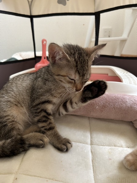 | 里親募集する理由 | 猫が増えてトラブルになっている地域に生まれていたので保護しました。 この地域は大人猫は順次TNRをしていきます。 |