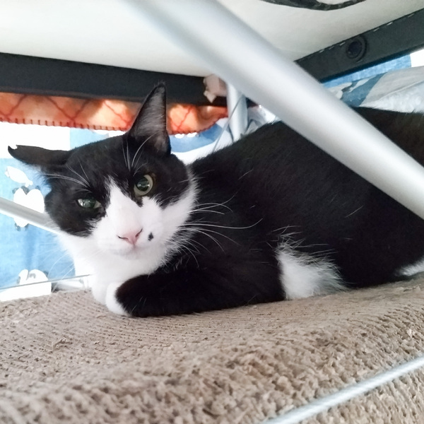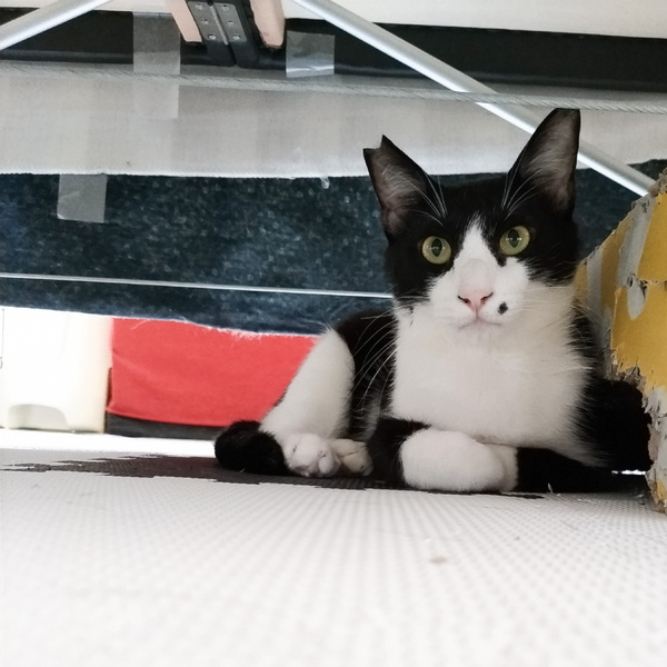 | 特徴(性格など) | 白黒のハチワレで、口元のホクロ模様がチャームポイント。 人見知りで逃げてしまうタイプですが、手を伸ばさない場合の距離は少し近くなったように思います。 ルームに通って少しずつ関係を築いていくというやり方もご一考いただけますと幸いです。 |