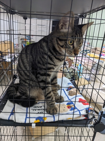 | 特徴(性格など) | かっぱつな猫さん バジル君 同時募集のミント君と兄弟です。いつも二人で寄り添っています。 きれいな毛並みのキジ猫の男の子。 ミント君とは違って、とても活発でやんちゃ。(大きないたずらはありません) いつも兄弟のミント君をかばっている兄貴肌のバジル。 普段はおとなしくミント君と一緒に寝ています。 |