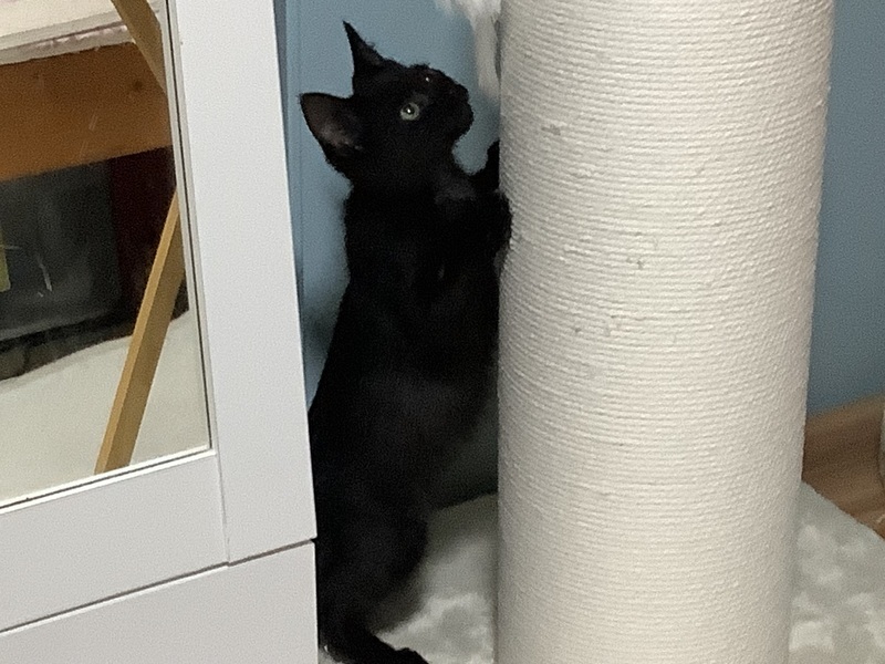 | 特徴(性格など) | 推定3ヵ月のオスの黒子猫ちゃんです。 白血病・エイズ検査ともに陰性(検査結果お渡し)、ノミダニ駆除済、便検査済、トイレしつけ済。ワクチン接種済(証明書渡し)。 とても元気いっぱいで、甘えんぼな子猫くんは、今がかわいい盛りで、保護された当初は、酷暑の中、脱水症状で救急病院に入院しましたが、今は、元気いっぱいで、色々な事に興味津々です。是非たくさん遊んで、幸せな猫生にしてあげてください。我が家の先住猫さん達とも遊びたいのに、拒否され、1人遊びにも夢中のうちに、疲れたら寝てしまうというマイペースな子です。 |