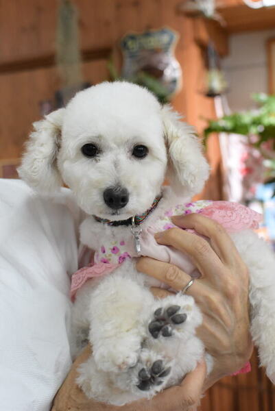 | 特徴(性格など) | ☆ 現在お見合いが決定しているため、一旦募集は中止いたします。(2024.10.5) <犬種> プードル(メス) <年齢> 4歳(2019年12月15日 生) <体重> 3.8㎏ ・ 健康診断 済 特に問題ナシ ・ 心雑音 ナシ ・ フィラリア 陰性(2024.4.5) ・ 6種ワクチン接種 済(2024.4.5) ・ ネクスガードスペクトラ 済 ・ 避妊 済(実施日:収容時実施済) ・ 狂犬病予防 接種済(2024.4.12) ・ マイクロチップ装着 済(装着年月日:収容時装着済) ・ 歯石除去 済(2024.4.15) ・ 右脇腹に5mm大の皮下腫瘤(毛包嚢胞)があり、摘出術実施済(2024.4.15) (病理検査の結果は良性でしたが、今後も定期的な検査が必要です) ・ 段差がある場所や走る時に、左の後脚をあげることがあり、 パテラの可能性がありますが、痛みはナイため様子見でいいと思います。 <性格> 人が大好き、とにかく甘えっ子です♪ ずっと人にくっついていたいタイプでお膝に飛び乗ってきます♪ 人見知りはまったくありません♪ どこを触っても怒ったりすることはありません。 他の犬とは特に問題はないです。 ただしテリトリーに入ってくる子に唸る事はありますが最初だけですぐ慣れます 売られたケンカは買うところもあるので注意が必要です。 ケージから出して欲しくて吠えることがありますが、 そんなに吠える方ではないと思います。 ダメというとすぐ理解してくれ、聞き分けのよい賢い子です♪ お散歩大好きです♪ 拾い食いがあるので注意が必要です。 室内でのトイレは、ほぼ完ペキに近くなってきています♪♪♪ オシッコはタイミングを見計らってトイレに誘導するとしてくれますし、 ウンチは1日3回くらいしますが、ほとんどシートの上でしてくれます♪(食糞あり) お留守番や夜はクレートでおりこうにできます♪ 夜は朝まで静かに寝てくれます♪ クレートの中で排泄して汚すことはありません♪ 食べることが大好きで何でも美味しく食べてくれます♪ りんごちゃんは人が大好き超甘えんぼさんなので、 すぐ馴染んでくれますし、暮らしやすい子だと思います♪ でも甘やかせすぎて、自分が1番優位に立つと、 他のワンちゃんにヤキモチ焼いたりするかもしれません ダメなことはダメとキチンと教えていただかないと、 要求吠えしたりワガママな子になってしまう可能性があります。 まだ若い子なので、きちんと躾をしてくださる方にお願いしたいです 可愛いりんごちゃんを大切にして下さる里親さまを募集しています♪ |