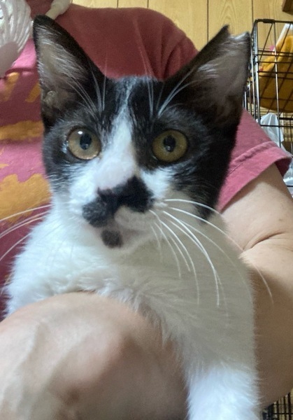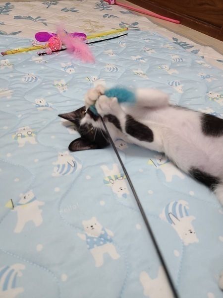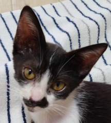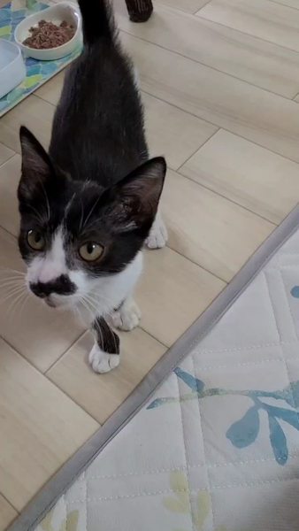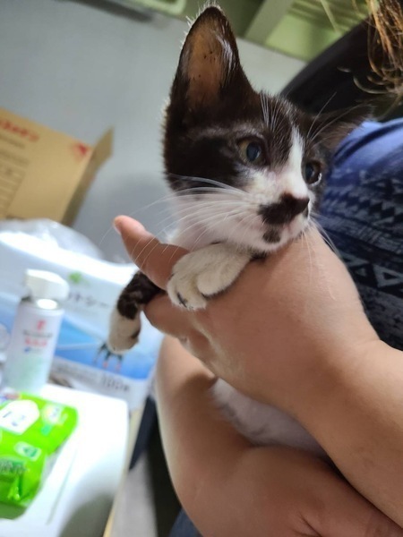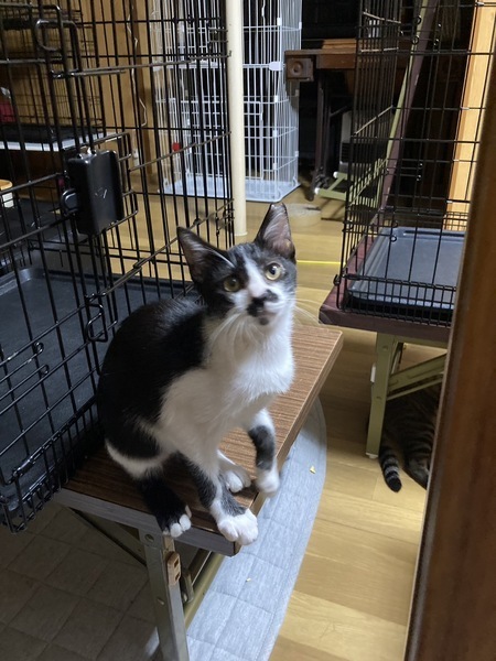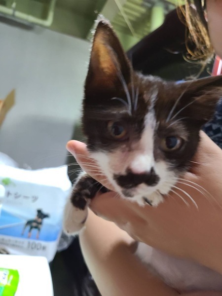 | 特徴(性格など) | 白黒ハチワレ。鼻にチョビひげ柄がチャームポイント。 少しやんちゃっ子でおもちゃで遊ぶのが大好き。 慣れるとゴロゴロスリスリ甘えてくれます。 |