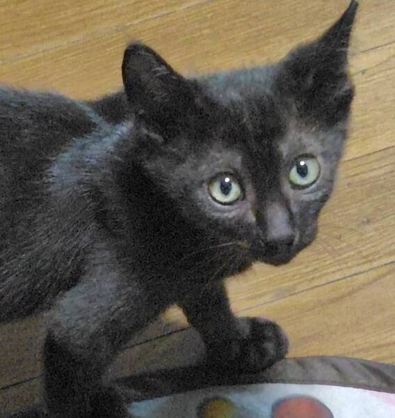 | 特徴(性格など) | 全身黒柄の女の子です 保護された時は警戒をしていましたが、今ではナデナデも抱っこもできます 他の兄弟より活発で、最初は男の子かと思いました かぎしっぽを立てて走る姿が、旗を立てているようでカッコ良いです |