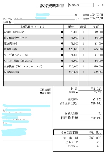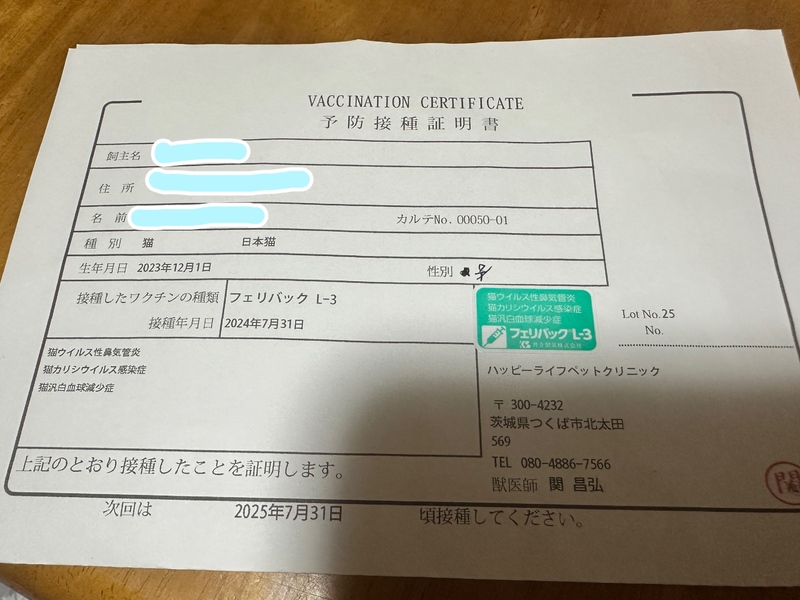 | ワクチン | 済 | 不妊去勢手術 | 済 |