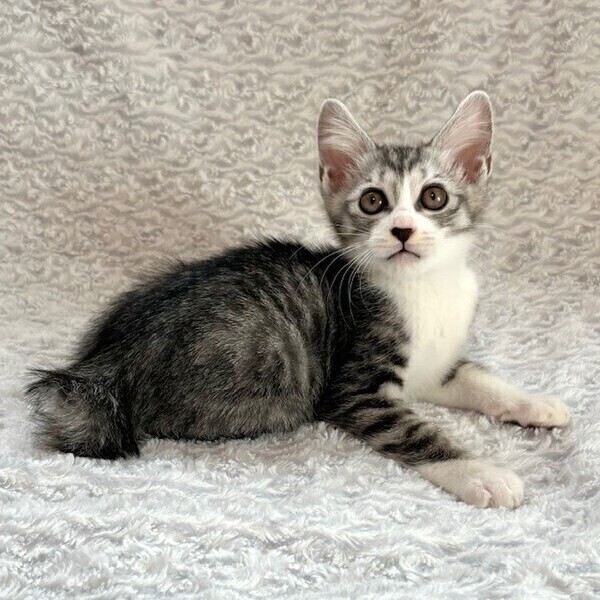 | 特徴(性格など) | 【仮名】雄斗くん 【性格】キレイなサバシロ雄斗くん♪ シルバーの毛並みはツルツルです! 今回の仮名はパリオリンピックシリーズ! ママがメダリスト級のベタ馴れなので このコももちろんベタ馴れです♪ おもちゃ遊びではことごとく パーフェクトなトリックを決めてくれる しびれるにゃんこです♪ まだまだチビッコなのでお留守番は少なめの方限定です! ぜひ兄妹か同世代にゃんこと一緒のお迎えをお願い致します♪ ※1ピキ譲渡不可 |
