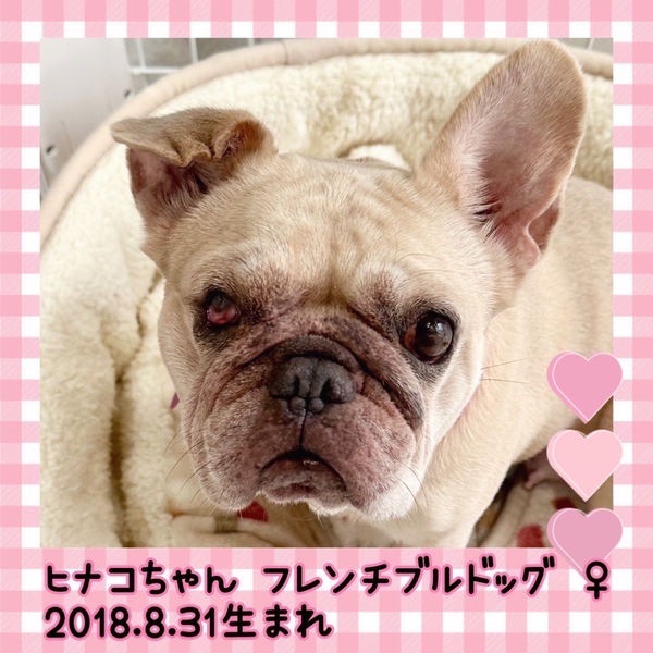 | 特徴(性格など) | ♡.*・゚┈┈┈┈┈┈┈┈┈┈┈゚・*.♡ 名前 ヒナコ 種類 フレンチブルドッグ 色 フォーン 年齢 2018/08/31 性別 メス 体重 11.74kg 経緯 ブリーダーからの保護 ワクチン 5種混合接種済 フィラリア 陰性(ー) マイクロチップ 済 避妊去勢手術 済 メディカルチェック 聴診触診、血液、検便、異常なし 右眼 眼球縮小、左眼 乾性角結膜炎 顔手足 皮膚炎 駆虫薬投与、ノミダニ駆除済、スケーリング済 外耳炎治療中 点眼治療中 皮膚炎治療中 ♡.*・゚┈┈┈┈┈┈┈┈┈┈┈゚・*.♡ ♥始めは少し慎重になりますが、慣れるのは早く、明るく甘えんぼさんです。 ♥右眼が眼球縮小により視力はないようです。チェリーアイもあり、眼摘を検討中です。 左眼は見えていますが、涙がなく乾いているので、軟膏で治療中。 お耳も外耳炎長期放置による変形で、右耳の穴はいびつに塞がったような状態です。 日常の様子はInstagramでご覧ください。 https://instagram.com/linkplus_wan.nyan?igshid=YmMyMTA2M2Y= |